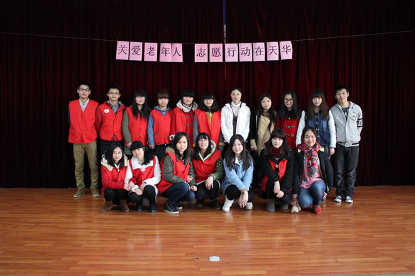 | 为引导广大青年学生继承优良传统,弘扬志愿服务精神,2014年3月5日,由语言文化学院分团委学生会组织的“关爱老人,志愿行动在天华”活动在嘉定区天华社区的晚会厅中展开。 青年志愿者们为老人们专门排练了精彩的节目,包括歌曲《水调歌头》《甜蜜蜜》《董小姐》,舞蹈《映山红》,以及老人们喜爱的东北二人转《热火舞秧》等。还与老人们一起进行了仙人指路和萝卜蹲的游戏,并给老人们带去了精美的礼物,会场气氛融洽美好。最后,志愿者部部长动情地讲述了自己和爷爷奶奶的故事,引发了老人们的共鸣,也赢得了在场所有人员的热烈掌声,为本次活动划下了完美的句号。 | ||