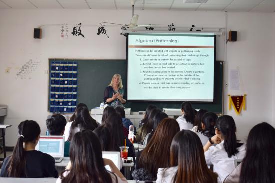 上海师范大学天华学院“教授进课堂(三)”活动于5月16日在日华楼575教室顺利举行。本次活动邀请到阿拉巴马大学人类发展与家庭教育专业的Cecile Komara博士。本次活动主题是《孩子的数学思想与进步》。针对如何培养学前儿童的数学能力,Cecile Komara博士指出以下四方面。