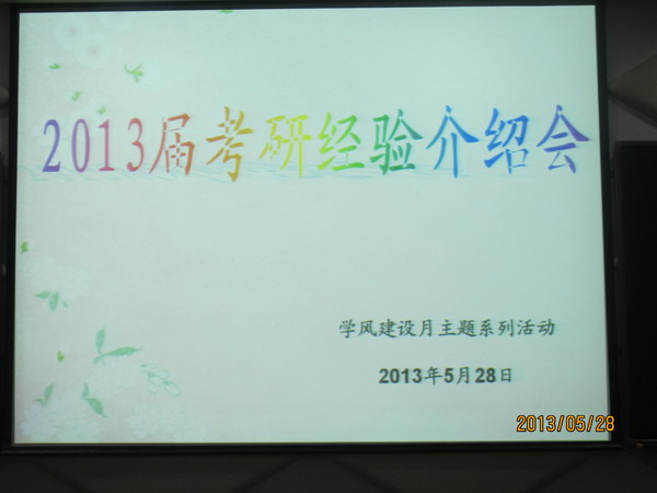 | 2013年5月28日晚上19:00, 教育系在明华楼五楼举办了2013届学生考研经验介绍会,此次会议是教育系5月开展的学风建设月系列活动之一。教育系常务副主任夏明烨出席会议,教育系2010、2011级有考研意向的学生参加会议,教育系、心理系联合党总支书记沈晓燕主持。 会议邀请2009级学前教育1班的李艾欣与井韵绮同学主讲。李艾欣同学是学院第三届“天华骄子”,曾获得过国家奖学金,通过长达2年的刻苦努力,最终考上了北京师范大学教育学部课程与教学论专业硕士研究生。井韵绮同学曾获得2011 上海市“大学生音乐比赛”西洋乐队三等奖,2012上海市“幸福中国”钢琴比赛优秀辅导教师等荣誉,因文艺特长突出,学习成绩优异,成功申请到了爱尔兰理工大学高等教育教学专业硕士研究生资格。两位同学将考研期间的体会、经验倾囊相授,与会同学听得非常认真,受益匪浅。(教育系) | ||