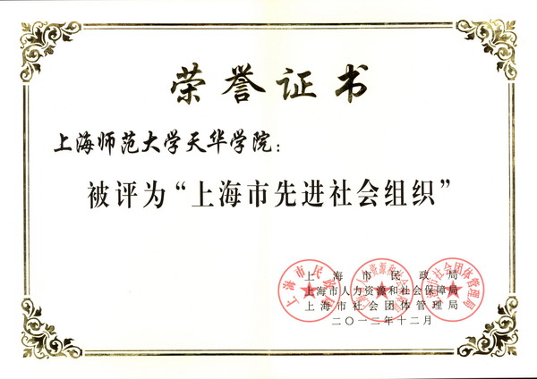 上海市民政局、上海市人力资源和社会保障局、上海市社会团体管理局开展了上海市先进社会组织评选活动,我院被授予“上海市先进社会组织”荣誉称号。