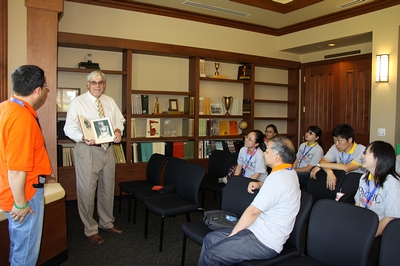 | 美国时间8月18日下午,我院第三批干部赴美研修团参观了太平洋大学校友会。校友会地处校园的中心区域,是由700多位校友共同捐资修建的一幢独栋建筑,掩映在鲜花绿树中,如同别墅一般精致美丽。 校友会主席Bill.Coen介绍说,校友会对学校的发展发挥了重要作用。目前太平洋大学拥有校友5.5万人,校友会与校友的联系很密切。校友会具有其中的2.3万人的电子邮箱,每二周会给他们发一份电子新闻。校友会还通过校友会网站、开展优秀校友评选、举办校友聚会、编印校友杂志等,与校友保持联系。据统计,近8000人能经常参加校友会的各种活动。 校友会主席Bill.Coen告诉我们,有的杰出的校友会经常返校演讲或讲座,与学弟学妹分享他们的学习体会或成功的经验,激励后辈努力学习、努力工作,有的校友通过捐款回馈母校,有的校友担当社区活动的志愿者奉献自己的时间来回馈母校。Bill.Coen还强调,太平洋大学的每一位学生自入学的第一天起就与母校建立了一种终身的校友关系,相信那些与母校长期失去联系的校友,虽年轻时不曾与母校联系或联系不多,毕业的时间越久对母校的思念会越深,年龄越大对母校的思念也会越深。 | ||