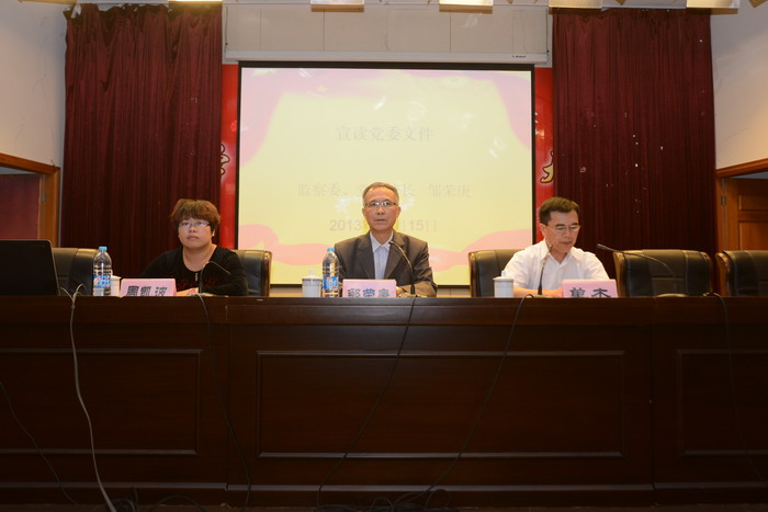| 2013年10月15日晚,学校在明华楼五楼报告厅举行了高级党校第十八期入党积极分子培训班的开学典礼,校监、党校校长邹荣庚,党校副校长单杰及组织部长周凯波出席大会,149名入党积极分子参加会议。 | ||
