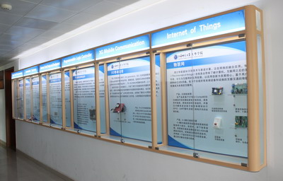 | 本学期,电信系在明华楼二楼和三楼楼梯口安装了电子显示屏,滚动播放学院及系部信息,还在三楼走廊增设了系列宣传橱窗,介绍专业技术,展示学生作品和团学工作成果,向学生尤其是2011级新生展示电信系在专业建设、学风建设等方面的风采。(电信系) | ||