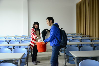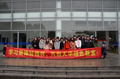 2012年3月5日,我院志愿者在日华楼各阶梯教室开展了以“学习雷锋好榜样 共创天华绿色教室”为主题的志愿行动。