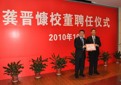 2010年10月13日,美国太平洋大学研究生院院长龚晋慷教授受聘担任我院校董。学院相关领导出席会议,会议由学院党委书记郭天成主持。