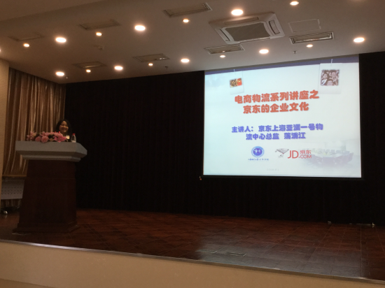 2016年6月1日下午16: 30,管理学院物流支部为了使物流管理专业学生深入了解电商物流,请来了京东上海亚洲一号物流中心总监蒲浦江经理给大家做了关于“京东的企业文化”的专题讲座。管理学院物理管理专业主任汪沁老师、管理学院物流支部章熙宇老师以及13-15级112名物流管理专业学生出席活动。