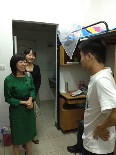 | 2012年9月17日晚,在对外汉语系常务副主任陈再阳带领下,系党总支部书记翁晓玲、副书记曹占侠和新生辅导员杨央一行四人,深入学生宿舍,慰问2012级新生。 在走访新生宿舍7号楼 530 至540 等 12间宿舍的过程中,系主任亲切慰问了大家,仔细询问了同学们入学以来的适应情况以及生活学习中遇到的难题,并细致回答了新生们的疑问。陈主任鼓励大家要加强同学之间的沟通交流,互帮互助,早日适应大学生活,实现角色转换。 通过走访宿舍和亲切交谈,老师们了解了新生思想动态,及时解答了他们的一些困惑,为今后工作的顺利开展和营造良好的师生关系打下了基础。(对外汉语 张文娟) | ||