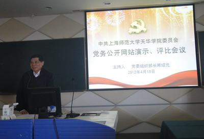 2012年4月18日,学院党委在明华楼五楼演播中心召开党务公开工作的交流与评比会议。