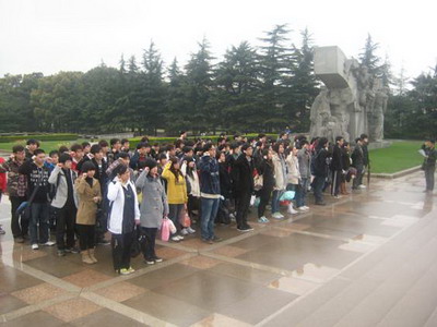4月9日,第七期高级党校入党积极分子一百二十人在学生党总支副书记江芳、宣传委员包静波带领下,来到龙华烈士陵园,缅怀革命先烈。学员们向烈士们敬献了花篮,并进行了宣誓。(江芳)