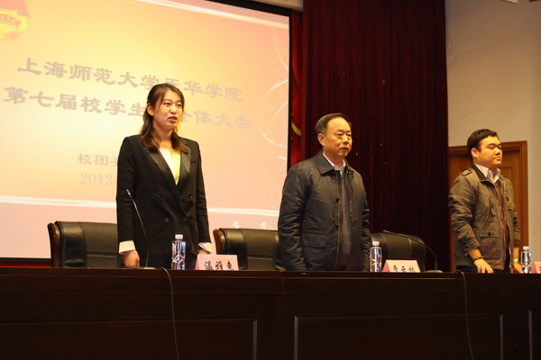| 2013年11月12日下午,上海师范大学天华学院第七届校学生会全体大会于明华楼五楼报告厅隆重举行。学校党委副书记、学保处处长曹云林,学保处副处长、校团委书记温雅惠,校团委副书记王一青出席会议。会议由新一届校学生会主席黄新恬同学主持。 | ||