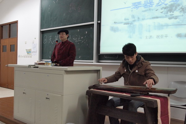 | 2012年12月11日,伴随着《时间简史》导读讲座现场的阵阵掌声,本学期经典导读系列讲座结束。12月13日晚,由国学院副院长、通识教学部主任祝亚平主讲的《古琴历史流派及入门基础》在教育系周磊老师弹奏的古琴曲《关山月》中结束。至此,本学期我院通识讲座圆满落幕。 | ||