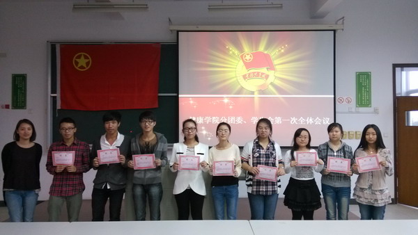 | 2013年10月23日,健康学院在日阶301召开了分团委、学生会第一次全体会议。分团委书记黄璐、全体学生会成员及各班级学生代表出席会议。会议对新一届学生会成员提出了要求,宣读了表彰人员的名单,分团委学生会主席及学习部新干事代表交流发言。 | ||