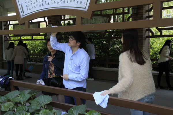 | 学院第十期新党员培训班的预备党员们通过自己的实际行动在校园的学生寝室公寓、文化长廊、体育馆等地方进行教育实践活动,捡拾垃圾、擦拭窗栏,以此充分发挥党员先锋模范作用,体现乐于奉献,服务他人的意识。(党校) | ||