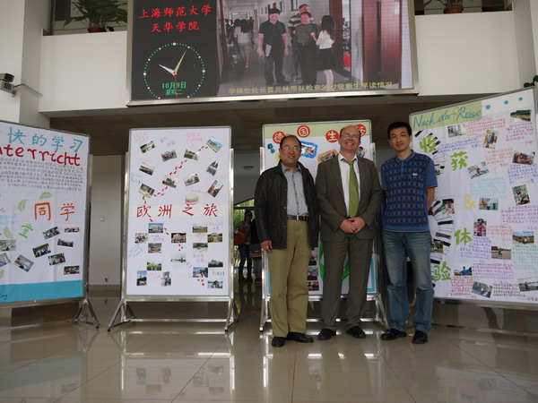 | 2012年10月9日,在上海师范大学德语系系主任朱建华老师陪同下,德国IIK语言培训机构领导Herr Jung来我院访问,并向德语系全体师生作了精彩的报告,同时与暑期赴德学生进行了深入交流,为德语系与IIK培训机构之后的友好合作奠定了基础。(德语系) | ||