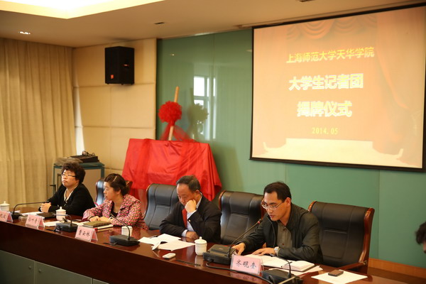 | 2014年5月9日下午1点30分,上海市师范大学天华学院大学生记者团在学校明华楼5楼会议室揭牌成立,到场领导有校党委副书记、学保处处长曹云林,党委委员、思政教研部主任孙叶青,组织部长周凯波,宣传部长齐砚奎,以及部分二级学院党总支书记,仪式由齐砚奎老师主持,记者团的全体成员及各二级学院的学生通讯员出席了活动。 周凯波老师首先宣读了成立大学生记者团的决定;接着,党委副书记曹云林及宣传部长齐砚奎共同为记者团揭了牌,几位领导还为记者团成员颁发了聘书和记者证;随后,记者团团长陈旭现场宣读了大学生记者团章程;最后由曹书记做了重要讲话。揭牌仪式结束后,记者团的指导教师梁洁为全体成员进行了第一次技能培训。(大学生记者团:郭振威) | ||