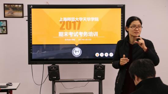 为进一步提高教师教育教学水平,做好期末各项教学工作,2017年12月15日中午12点,艺术设计学院在光华楼518教室召开了期末考务培训及教学文档规范培训会议。学院副院长徐子卿、朱花,院长助理李娟、包臻隽,以及全体专职教师及行政人员参加了本次培训会议,培训会由副院长朱花主持。