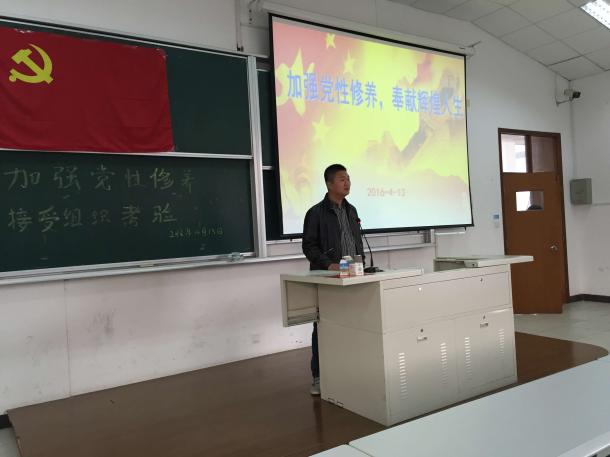 2016年4月13日下午16点30分,工学院第五期中级党校于日阶402举行开班第三讲——加强党性修养,奉献辉煌人生。本次培训课由网络工程党支部书记彭刘刚担任主讲老师,部分大一、大二同学参加。