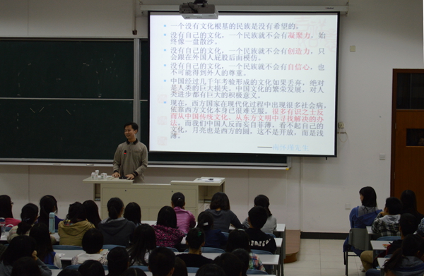 2013年10月21日晚18点,语言文化学院特邀华东师范大学阎德学老师向全院13级新生讲授“蒙学经典讲读――弟子规”,语言文化学院党总支书记孙叶青、副总支书记周建文及新生辅导员出席。