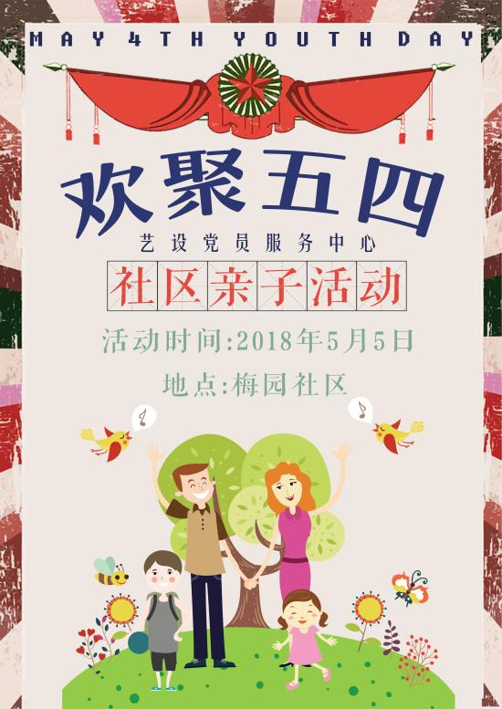 为了弘扬“五四”爱国、进步、民主、科学的精神,我校艺术设计学院党员服务中心于2018年5月5日下午13:30联合梅园社区共同开展“欢聚五四”社区亲子活动,旨在让社区居民在感受趣味的同时对“五四”青年节有更好的认识,更希望让社区小朋友进一步增强爱国意识。
