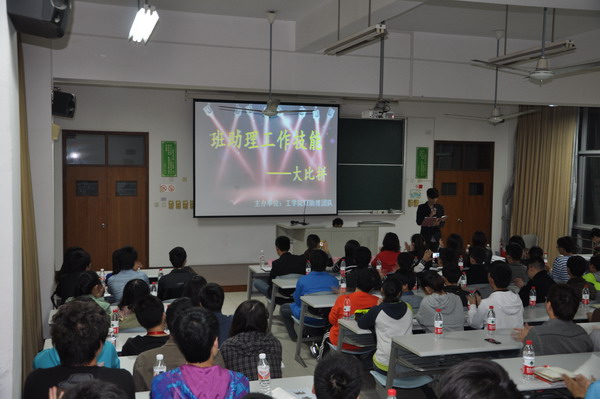 | 2013年11月7日晚,工学院班助理团队筹划并举办的“班助理工作技能大比拼”竞赛于日阶303拉开帷幕。工学院党总支书记刘香连、校班助理总负责人华芸、工学院班助理总负责人刘俊以及13级辅导员、工学院13级各班班委参加活动。 活动通过5分钟班级风采展示、班级学生信息大考察、分析典型案例等三个环节,展示了工学院助理团队的工作成果。华芸老师和刘香连书记分别对本次活动进行点评,指出此次比赛策划精心、参赛选手表现出众,证明了工学院的班助理团队是非常优秀的,是有所作为的,希望班助理能通过这次比拼相互学习,继续提升整体实力与素养,再创新的辉煌。(工学院) | ||