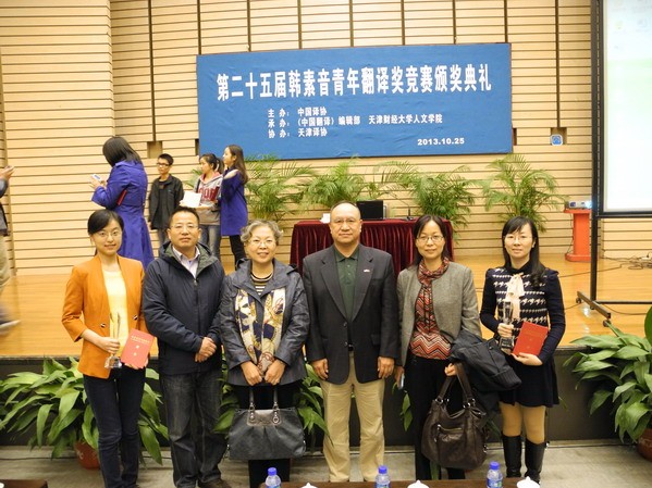 | 全国第二十五届“韩素音青年翻译奖”竞赛,经过专家历时五个月的公正、严格的匿名评审,于2013年10月13日公布了竞赛结果,我校语言文化学院英语专业教学部师生在此次大赛中成绩斐然。在英译汉组,青年教师邢�荣获一等奖,青年教师缪建维荣获三等奖,青年教师黄蔚、王庆华、朱博和英语专业学生杨帆、刘旋、胡珊珊、胡倩倩荣获优秀奖。在汉译英组,青年教师朱博荣获三等奖。(语言文化学院) | ||