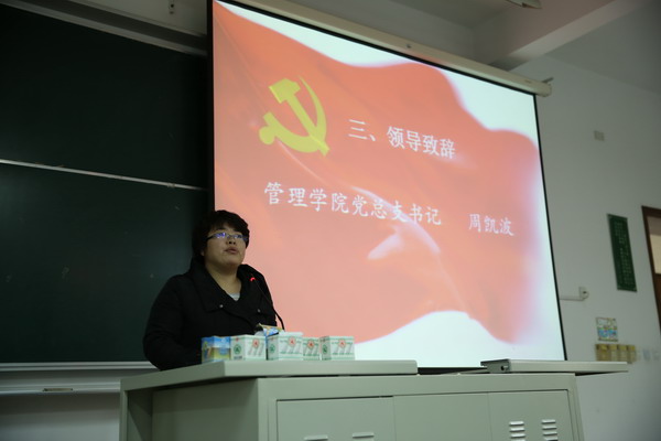 | 2014年3月10日下午16:30,管理学院党总支第一期中级党校在日阶102举行开学典礼。开学典礼由国际商务专业学生党支部书记曹佳妮主持,管理学院党总支书记周凯波、总支副书记兼物流管理专业学生党支部书记张军、分团委书记喻林萍、财务管理专业学生党支部书记智�、旅游管理专业学生党支部书记周欢、交通运输专业学生党支部书记华芸出席开学典礼。 根据自愿报名、班级选送,共有139名学员参加本期中级党课的学习。管理学院党总支书记周凯波在开学典礼上作了重要讲话动员,对学员今后的学习、工作提出了努力的方向,希望他们在行动上以党员标准严格要求自己,在学习工作生活中发挥党员先锋模范作用。 | ||
