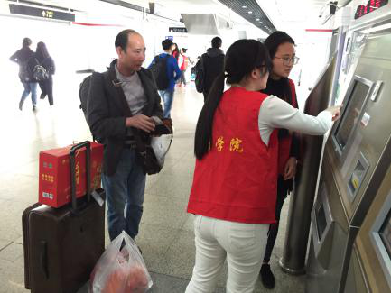 新春的阳光温暖照耀着,如同我们满腔的热情。“雷锋们”各自分配任务,包括:帮忙买票、帮助提行李、出入站指引等等,在服务岗位上做一切力所能及的事情。