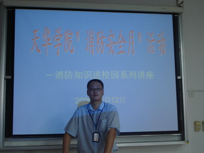 | 根据学院“消防安全主题月”活动的安排,2009年5月12日中午12点,特邀请了上海市防火中心高老师在日华楼201阶梯教室为全校教职工代表和学生代表共计200余人进行了一堂 “消防知识进校园”讲座,讲座主题围绕“抗震减灾日”开展,结合历来火灾带来的沉痛教训,重申防火自救及火场逃生的相关知识的重要性和必要性,真正达到“关注消防,珍爱生命”的目的。 通过此次消防知识进校园讲座,与会教职工和学生代表纷纷表示不但学习了关于消防火灾防范、火场逃生自救的知识,并且加强了关注消防方面的警惕性,达到了警钟长鸣,防范于未然的效果。 下图为消防知识进校园讲座现场。 | ||