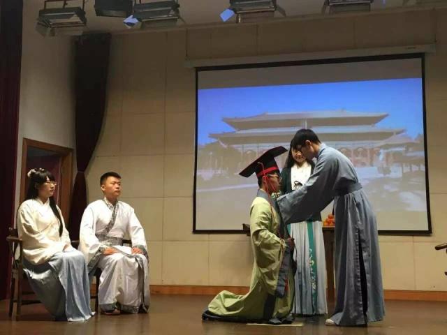 冠礼与笄礼是汉族祖先们对未成年人跨入成年举行的庄严仪式,男子行冠礼,女子行笄礼,代表受礼者将由此承担社会责任,履践孝、悌、忠、顺的德行。加冠、及笄、聆讯、宣誓,是汉语言文学专业活动的“保留节目”。在农历三月初三汉民族的传统节日——上巳节来临之际,为汉语言文学专业的学生举行冠礼和笄礼,既弘扬了中华传统文化,展现了中华传统礼仪之美,又通过成人仪式使同学们正视肩上的责任,完成角色的转变,宣告长大成人。