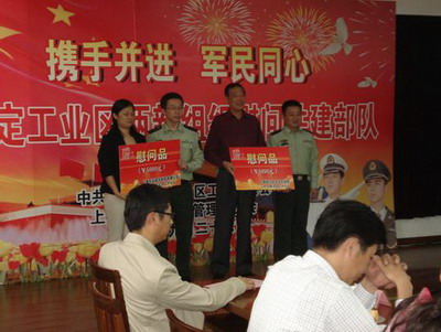 | 2010年9月27日下午14:00,学院党政办公室主任谢吕法、保卫处消防安全科科长周建光代表学院赴嘉定消防支队,参加“携手并进,军民同心”嘉定工业区两新组织慰问共建部队活动。(周建光) | ||