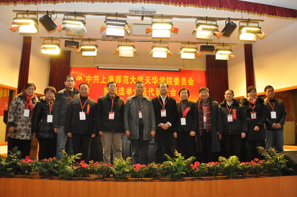 | 2013年1月15日下午,中共上海师范大学天华学院委员会在明华楼五楼报告厅召开换届选举党员代表大会。市教卫党委副秘书长曹荣瑞,市民办高校党工委专职组织员尹福会,大会主席团常务委员郭天成、邹荣庚、韩晓玉、龚春蕾等同志在主席台就座,董事长邹荣祥、院长石伟平等嘉宾参加会议。邹荣庚同志主持。 | ||