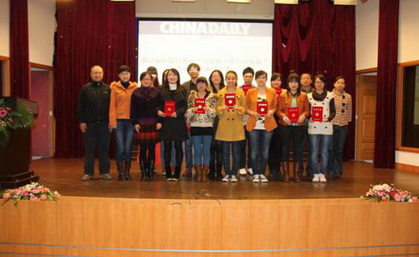 | 2012年11月20日晚,英语系在明华楼五楼报告厅举办第18届中国日报社“21世纪•可口可乐杯”全国英语演讲比赛校内选拔赛决赛。学院副院长、英语系常务副主任史文,英语系指导教授万正方,教师邢�、胡�、邹冰洁,辅导员杨燕玲担任本届决赛评委,英语系全体新生到场观摩比赛。 决赛当晚,各位选手表现出色,在经历了命题演讲,即席演讲和回答问题三个阶段的角逐,最终英语系刘青、吴越同学分获特等奖和一等奖,将代表我院参加21世纪杯全国英语演讲比赛上海赛区决赛。(英语系) | ||