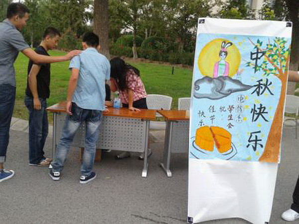 | 2012年9月28日,为庆祝即将来临的中秋及十一国庆长假,在电信系团总支书记金玫带领下,电信系学生会主席王琪与其他学生会成员一同给学院师生送上了真诚的祝福。 电信系学生会成员走访了相关部门领导和各系团总支书记的办公室,给他们送去了节日的祝福。下午16时,学生会成员给部分留校学生派发了“爱心月饼”,送去温馨的祝福,让同学感受到浓浓的节日氛围。 电信系团总支书记金玫表示“庆中秋及十一温暖送祝福”活动非常有意义,今后要一直传承下去,成为电信系学生会的一大特色。(电信系) | ||