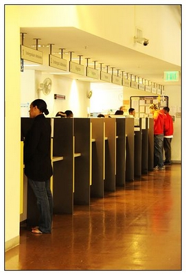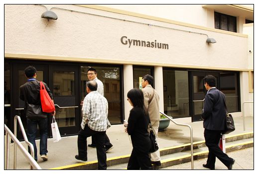 | 美国当地时间8月11日下午,研修团参观了州立大学的体育馆和学生事务中心。令人印象深刻的是体育馆入口处墙壁上悬挂着为州大的体育活动事业做出突出贡献的师生的照片。 旧金山州立大学的大学生服务中心在校园内一个高层楼房中的一楼,面积约300平方米。基本布局是在长方形的大厅中,中间布置有六台学生可以自由使用的电脑。大厅的左侧是用玻璃隔断的接待柜台,呈L型展开,上面分别标明金融支持、生涯辅导、交费、保险、贷款、奖学金、一卡通等,各自分门别类展开。 | ||