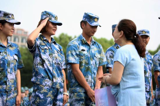 滕薇院长对全体参训教官、辅导员和学生的表现给予肯定,鼓励同学们再接再厉,并代表教育学院向所有教官和陪训的辅导员送上了慰问品。最后,滕院长祝愿在9月3日的阅兵仪式上,教育学院的学生能以最佳的精神面貌接受学校领导的检验,展现师范生的优良风采。