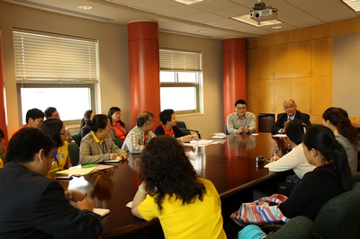 | 美国当地时间8月11日上午,我院第三批赴美研修团走访了旧金山州立大学教育研究生院,院长Jacob Perea教授热情接待了我们。Jacob Perea教授首先介绍了教育研究生院的基本情况。教育研究生院由管理与跨学科研究系、初等教育系、教育技术系、中等教育系和特殊教育系5个系组成,主要是硕士和博士研究生教育,共有22个硕士学位授予点和2个博士授予点。学院目前约有3000名研究生,还有50名左右的交流障碍专业本科生。Jacob Perea教授重点介绍了该学院与中国高校的合作项目。由于该学院在特殊教育与早期教育方面具有很大优势,与台湾两所大学建立了关于自闭症儿童的合作研究,与香港大学、北京师范大学及成都政府都建立了相关的合作项目。此外,教育研究生院还与华南师范大学建立了一个对外汉语教师(硕士学位+资格证书)的合作项目,今年9月将有15名学生正式进入为期两年的学习,毕业后将取得硕士学位及加州对外汉语教师资格证书,以满足目前加州对普通话教师越来越大的需求。 | ||