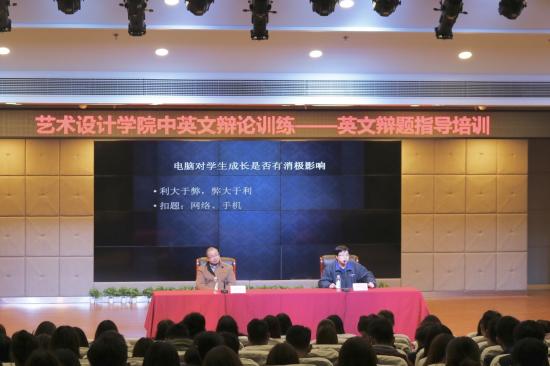 为提高学生的辩论交流,团队协作能力及英文水平,贯彻落实我校“三抓三坚持“的育人理念,在陆湲湲老师及各辅导员的带领下,开展了艺术设计学院英文辩题指导培训,邀请了语言学院的李隽轶老师和袁振老师在晖华楼的报告厅举行。
