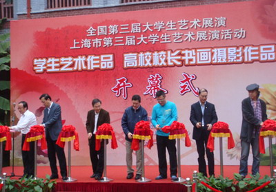 | 2011年11月4日下午,由上海市教委主办的全国第三届大学生艺术展演暨上海市第三届大学生艺术展演活动、学生艺术作品、高校校长书画摄影作品展在华东政法大学长宁校区举行,市委领导为本次展览剪彩。在这次艺术作品展演中,我校教育系沈鑫睿与金超同学荣获艺术作品一等奖。 在全市各高校的共同努力下,本市高等学校艺术展经过半年多的征集,共收到全市44所高校的书法、绘画、摄影、雕塑、DV等九大类大学生作品和校长作品374件。展出的作品站在时代的高度,从不同的视角见证了中国共产党90年的光辉历程,以及改革开放以来伟大祖国所取得的巨大成就,体现了向真、向善、向美、向上的校园文化特质,表现了大学生实现中华名族伟大复兴的远大抱负,展示了当代大学生正确的价值观、人生观和健康的审美追求。(教育系 岳远洋) | ||