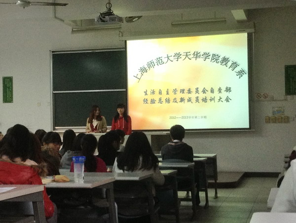 | 2013年4月8日下午,教育系在日阶101教室召开了“生活自主管理委员会自查部经验总结及培训大会”,党总支书记沈晓燕、自管部指导老师周磊及各班级辅导员、自管会自查部56名干事和62名安全员、生活委员参加会议。自查部部长黄欣蕾、副部长郭睿智同学主持。 教育系生活自主管理委员会本学期正式成立,下设自管部与自查部两个部门,由教育系学生入党积极分子组成,周磊老师指导,主要职责是检查教育系学生寝室卫生。会上两位部长介绍了生活自主管理委员会的结构组成、成员性质、自查部工作职责以及自查部12项检查细则,并分析以往工作中存在的问题及今后的解决方案。 总支书记沈晓燕作总结发言,强调自查部作为一支全由学生入党积极分子组成的队伍,要秉着“为同学全心全意服务、为同学健康成长服务”的思想,充分发挥先锋模范作用,并希望全体与会学生在工作中不断探索自查部的工作规律,开拓自查部的工作新领域及新模式。(教育系) | ||