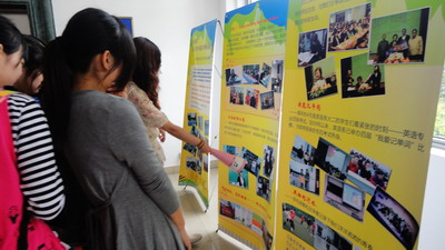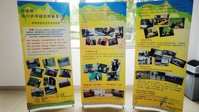| 2012年5月,值英语系团总支成立五周年之际,英语系团总支通过展板、视频等形式展示、回顾了团总支五年的工作历程。 英语系团总支成立于2007年5月,在校团委的指导与支持下,不断加强基层组织建设,不断完善各项规章制度,开展各类有特色、有影响的活动。 英语系团总支通过展板形式,展示了如演讲比赛、莎士比亚戏剧比赛、“明礼修身,遵仪尚美”、我爱记单词等特色活动的开展情况,还制作了“那些年,我们走过的青春”为主题的视频短片,全面回顾了英语系团总支五年工作和成长历程。短片最后,现任校团委书记刘天翔回顾了曾任英语系第一届团总支书记时的团总支面貌,肯定了该组织五年的工作成绩。(英语系) | ||