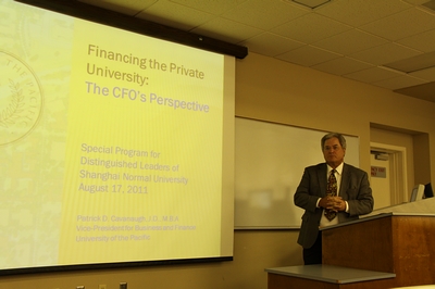 | 美国当地时间8月17日下午,太平洋大学首席财务官、商业金融副校长Pat Cavanaugh教授为我院第三批干部赴美研修团全体成员作了关于《从CFO的视野看私立大学的财务运行》的讲座。 作为非盈利私立大学,太平洋大学免税的,并以较低的利率从银行贷款或购买债券。联邦和州政府给予学校的资助大部分用于学生贷款,其余部分主要为教授的科研基金。学校的财政收入主要来源于学费收益,部分来源于校友或社会的捐赠,捐赠收入正在逐步增长。目前,太平洋大学正逐步把科技应用发展于教育。Pat Cavanaugh教授还介绍了太平洋大学的资金预算的来源和使用情况和太平洋大学捐赠基金的特征和管理、太平洋大学的财务评估业绩工具、金融危机对太平洋大学的影响等问题。 | ||