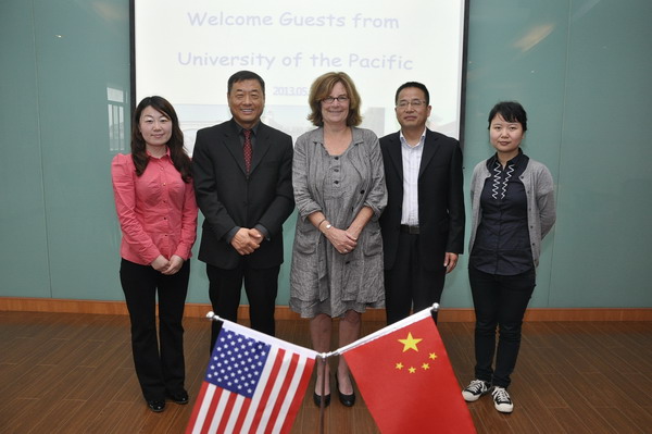 | 2013年5月31日,美国太平洋大学科学和文理学院院长Dr. Rena Fraden和该学院传媒系系主任教授Dr. Dong莅临我校进行访问,并洽谈国际合作项目。 | ||