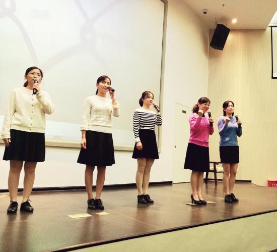 本次培训邀请了上海戏剧学院王苏、刘宁等知名教授为学员讲授经典诵读的相关知识,所有学员需要准备一个朗诵节目,由组织方指派教师指导学员排练。我校陈再阳老师克服病痛,从不缺席排练,听报告时与老师积极互动,排练节目时专心投入,出谋划策;于美娟老师被推选为《青春万岁》组组长,做了大量的组织协调工作,两位老师认真敬业的精神得到了培训组织方和同组教师的高度好评,朗诵节目《青春万岁》也被指导教师推荐为汇报演出节目。11月2日,本次培训活动的汇报演出在上海商学院三楼报告厅顺利举行,《青春万岁》组全体教师热情的朗诵、蓬勃向上的风貌获得了阵阵掌声。