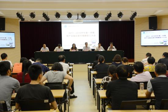 2017年9月1日中午12:40,资产设备处在图书馆多功能报告厅隆重召开新学期教职工大会,资产设备处处长朱清,副处长董海霞、周建文,图书馆馆长吴志荣,网络信息中心主任许晓洁,计算机教育技术中心主任孙敏凤和资产设备处全体教职工出席了大会。大会由资产设备处副处长董海霞主持。