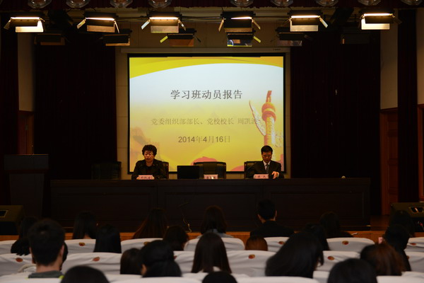 | 2014年4月16日,我校第十二期新党员学习培训班开班典礼在明华楼五楼报告厅隆重开班,全校共153名教职工及学生新党员参加。开班典礼由党校副校长单杰主持,上海市党史学会副会长唐莲英教授作题为《梦想、理想与成长》专题教育报告。 | ||