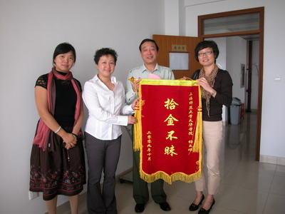 | 8月29日,我院06春旅游管理1班杨文垠同学在校外拾到一个手提包,内有现金近万元、信用卡及重要资料数份。杨文垠同学分文未动,物归原主。当失主葛女士拿出现金1000元酬谢时,被杨文垠坚定地拒绝了。10月22日,失主葛女士亲自向我校赠送锦旗,并表达了感激和赞赏之情。 杨文垠同学的这种拾金不昧精神,充分展示了我院大学生良好的精神风貌,值得全院同学学习。(杨艳) | ||