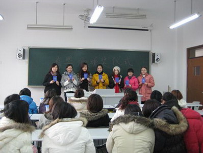 | 2009年12月28日,教育系在日华楼306教室举行了育婴师中级资格证书颁证仪式,由负责培训的上海宏星职业技术学校校长向06级同学代表颁发证书。此次考试06级学前教育共43名学生参加,42位通过考试,其中22位取得良好以上的成绩,通过率达97.7%,优良率达51.2%。(沈晓燕) | ||