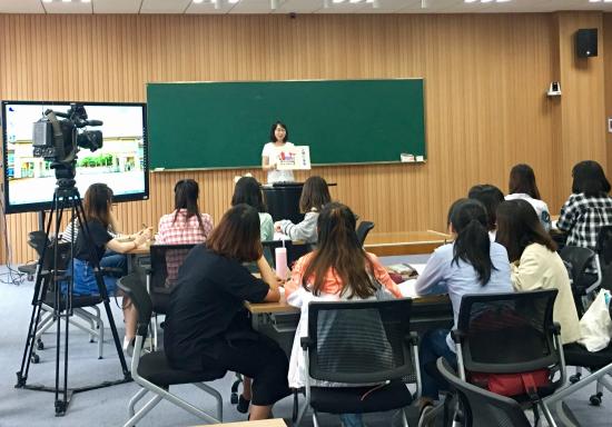 6月5日下午,上海电视台外语频道《中日新视界》栏目组来我院日语专业进行节目拍摄。语言文化学院日语专业教师张丽珺、日语专业2013级、2014级部分学生在同华楼观摩教室参加了现场拍摄活动。预计节目将在今年8月播出。