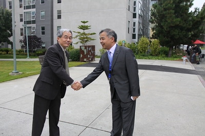 | 8月8日,我院第三批干部赴美研修团来到旧金山州立大学,正式开始了在美学习。旧金山州立大学副校长吴彦伯对研修团的到来表示热烈的欢迎,认为我院教育国际化举措是很有远见的。我院第三批干部赴美研修团团长叶才福代表天华学院对彦伯吴副校长的热情接待表示感谢,勉励研修团全体成员努力学习,积极参与,认真思考,不辜负邹荣祥董事长和全院师生的嘱托和厚望。(第三批干部赴美研修团) | ||