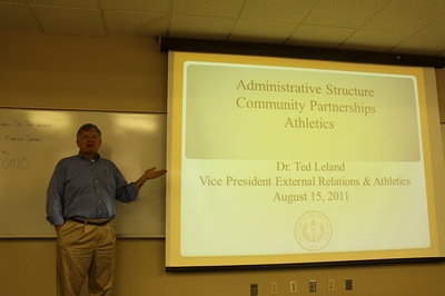 美国当地时间8月15日下午,太平洋大学外部关系副校长、体育部部长Ted Leland博士为研修团作了关于《太平洋大学组织结构、社区合作、体育运动》的讲座。
